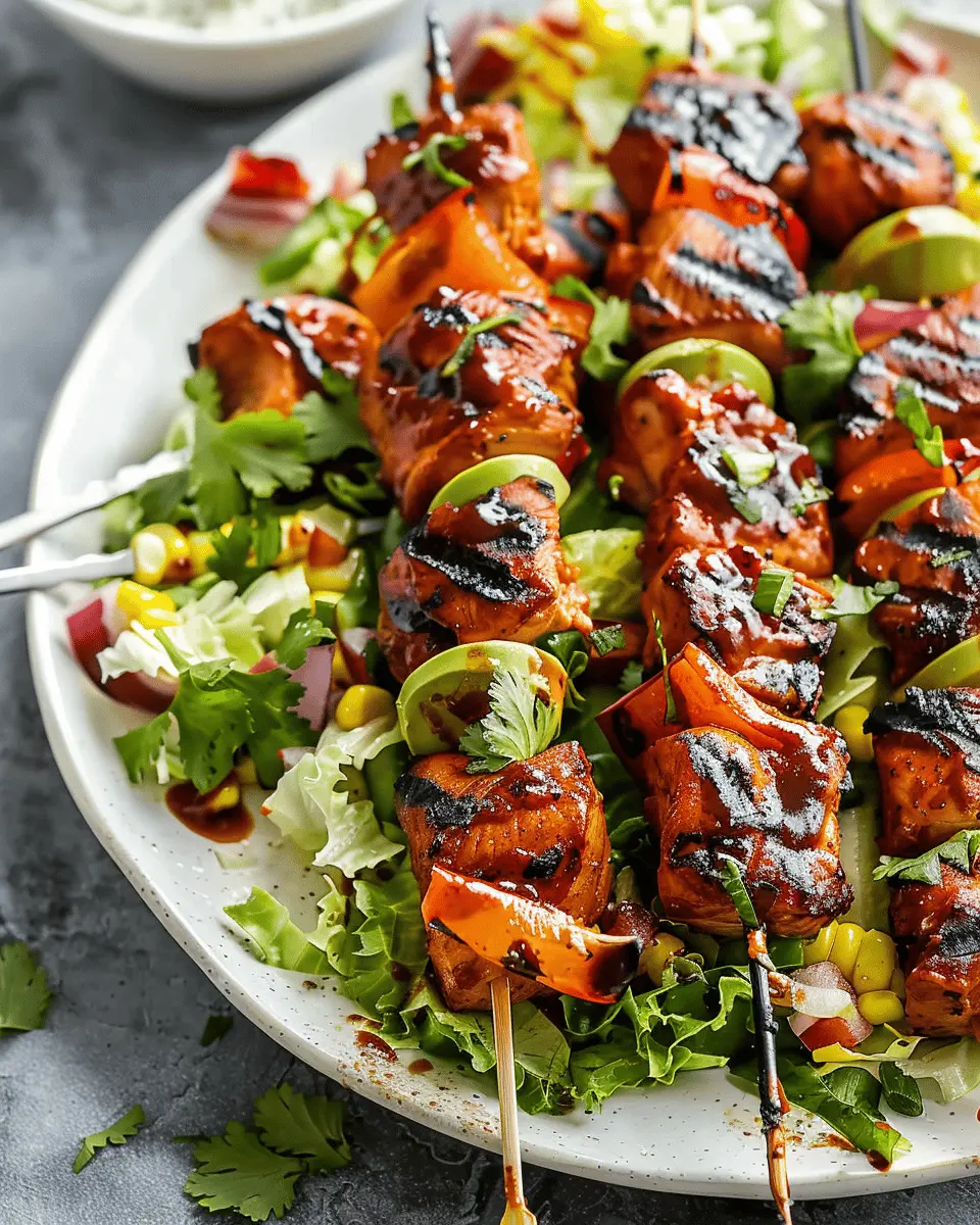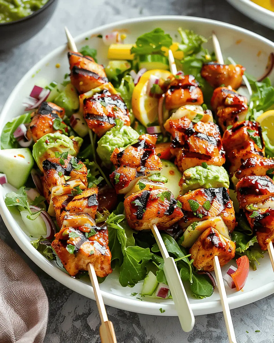 And there you have it! A bright, flavorful BBQ chicken skewer salad that’s sure to impress at any gathering.