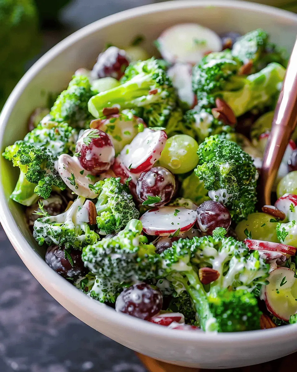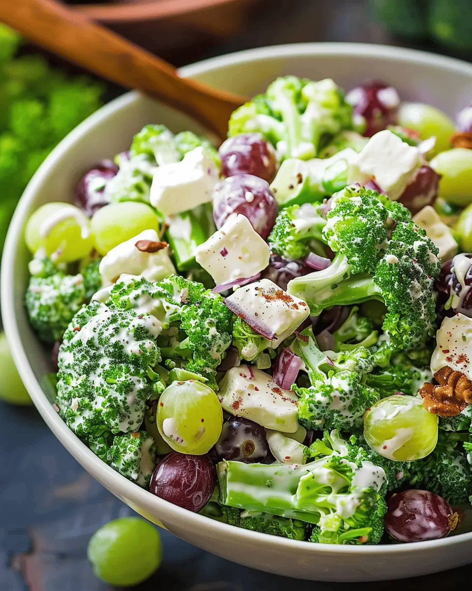 Creating a broccoli grape salad is not just about following a recipe; it’s about bringing together fresh ingredients to create a vibrant dish that’s loaded with flavor and nutrients. Packed with the crunchiness of broccoli, the sweetness of grapes, and the savory touch of turkey bacon, this salad is a delightful addition to any meal. Let’s dive into the steps you need to prepare this delicious recipe effortlessly!