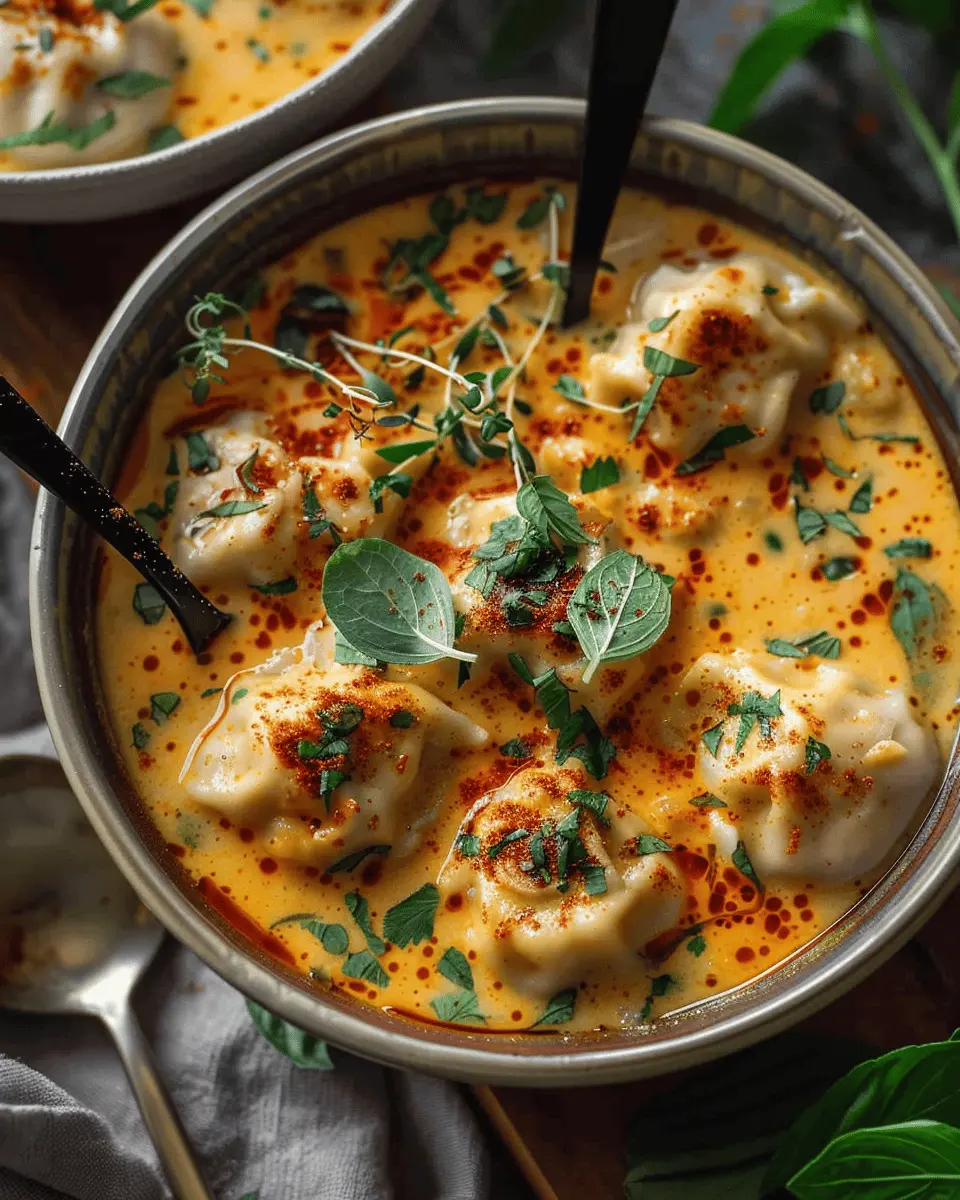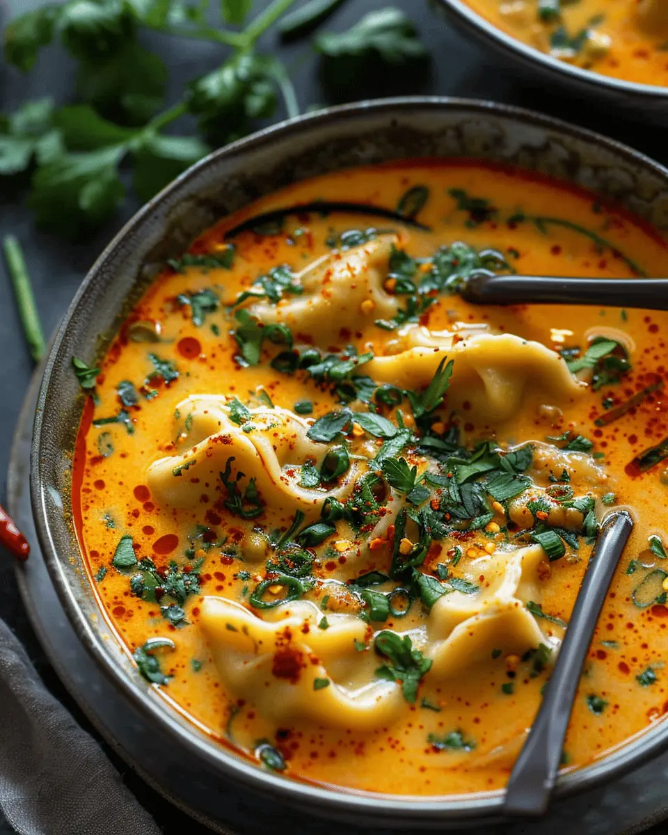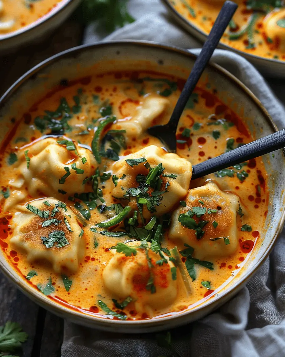 A warm and comforting coconut curry soup filled with delicate dumplings, perfect for any season.