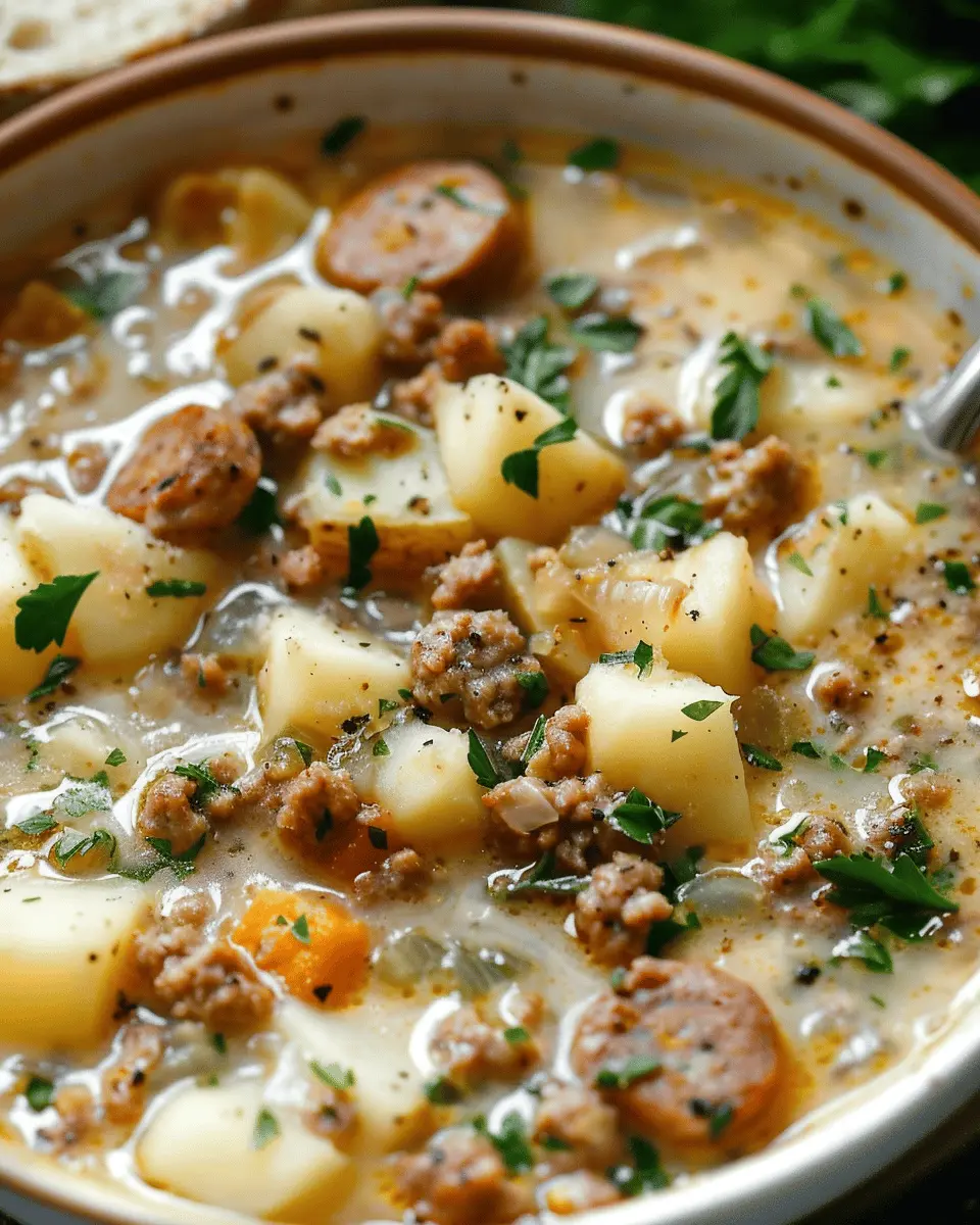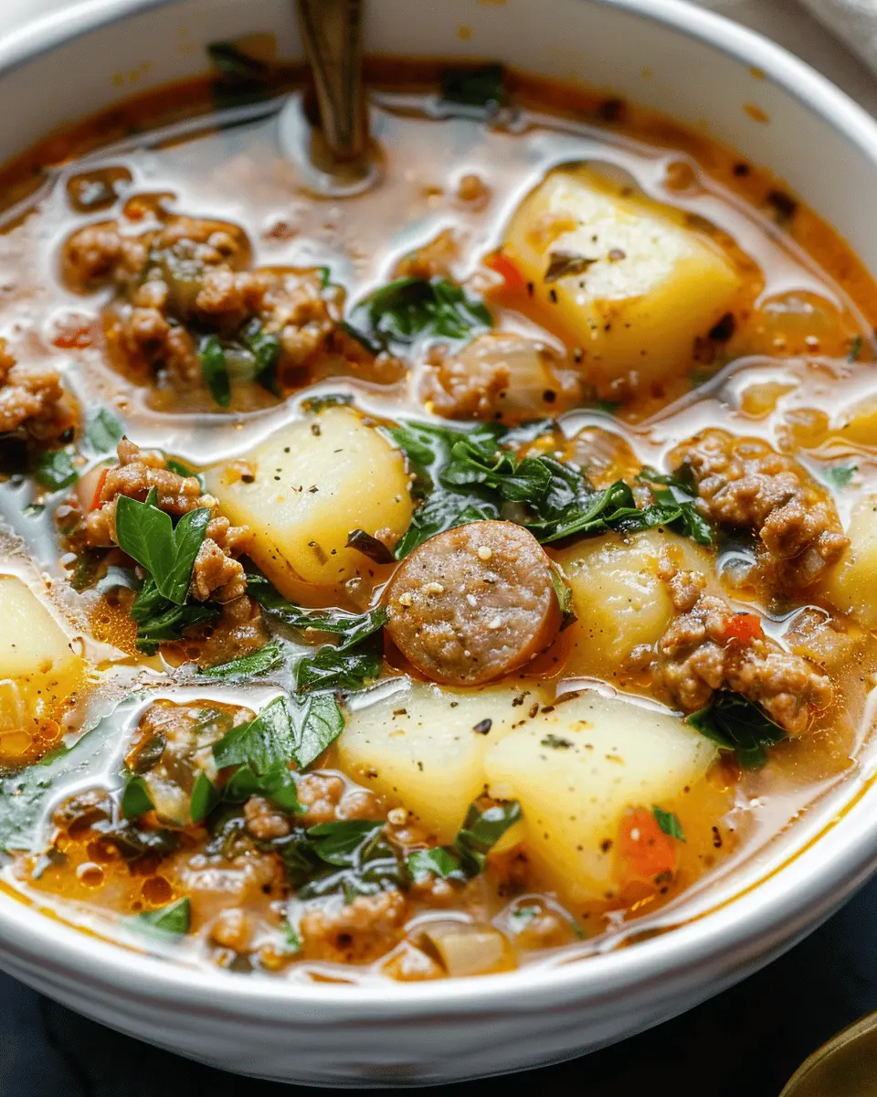 A warm and hearty soup perfect for chilly nights, featuring Italian sausage and tender potatoes.