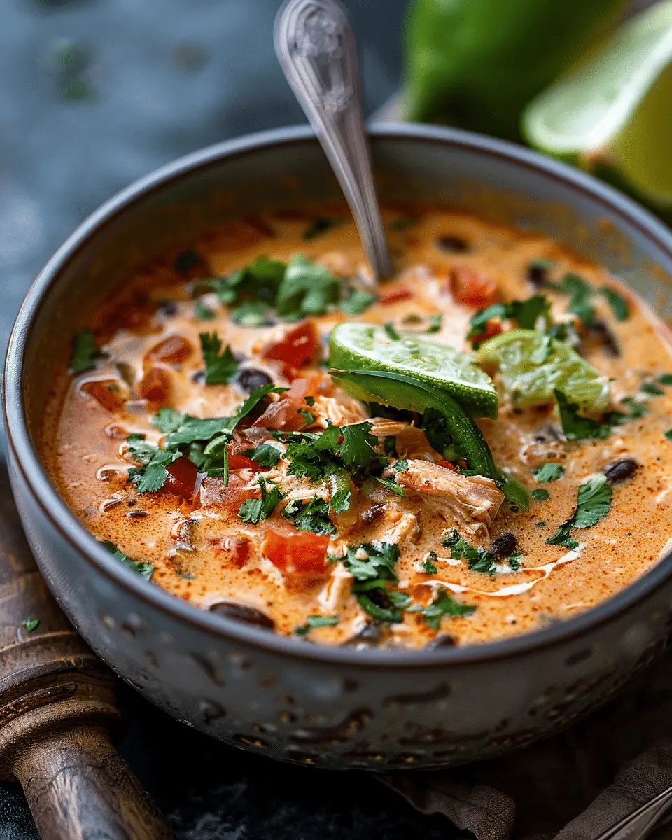 A comforting and flavorful creamy chicken enchilada soup that’s perfect for chilly days.