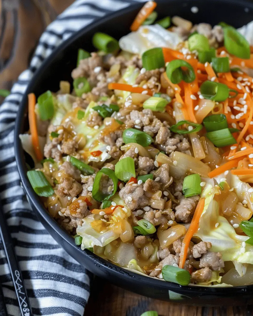 Don’t forget the garnish! Topping your dish with sliced green onions, sesame seeds, or a sprinkle of crushed red pepper can amp up the flavor profile. Consider a drizzle of soy sauce or sriracha for an extra kick. These small touches can truly transform the Egg Roll in a Bowl, making it visually appealing and utterly delicious. You can also explore good ideas on garnishing in this guide on Food Network.