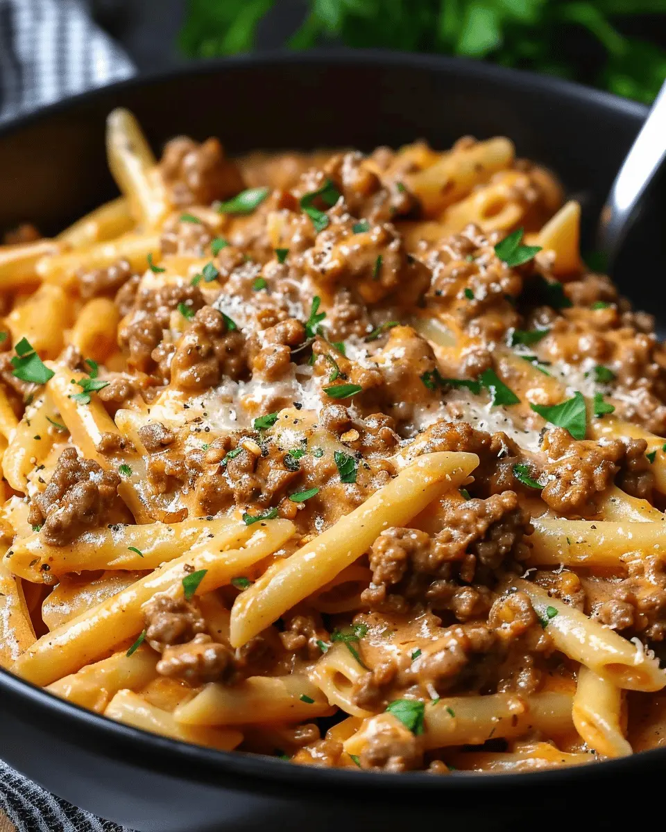 Once you’ve got everything ready, the actual cooking takes around 20 minutes. This includes browning the beef, cooking the pasta to al dente perfection, and melding all the delicious flavors together with that creamy sauce. The best part? You’ll get to smell it all coming together!