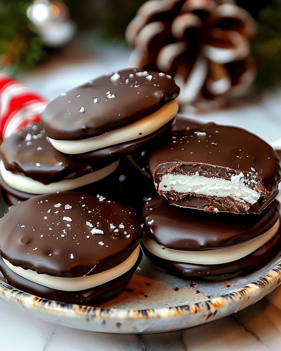 Now comes the fun part! You’re ready to dip each chilled peppermint patty into the melted chocolate. Using a fork, submerge each one, making sure it’s well-coated, then let any excess drip off before placing it back onto the parchment paper. If you’re feeling a bit fancy, sprinkle some crushed peppermint on top for that extra flair. Once you’ve dipped all the patties, refrigerate them until the chocolate hardens.