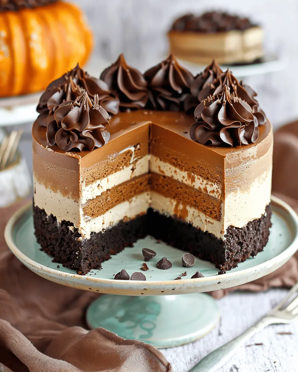 This Pumpkin Chocolate Mousse Cake is the perfect dessert for fall, combining rich chocolate with the warm flavors of pumpkin.