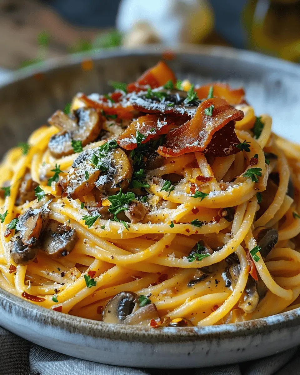 Creating the perfect Pumpkin & Mushroom Spaghetti with Crispy Turkey Bacon is all about layering flavors and textures. Here are some tips to elevate your dish: