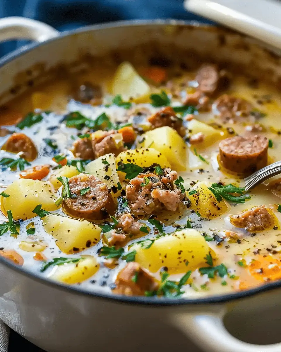 PrintSausage Potato Soup: Easy Comfort Food with Turkey Bacon Delight