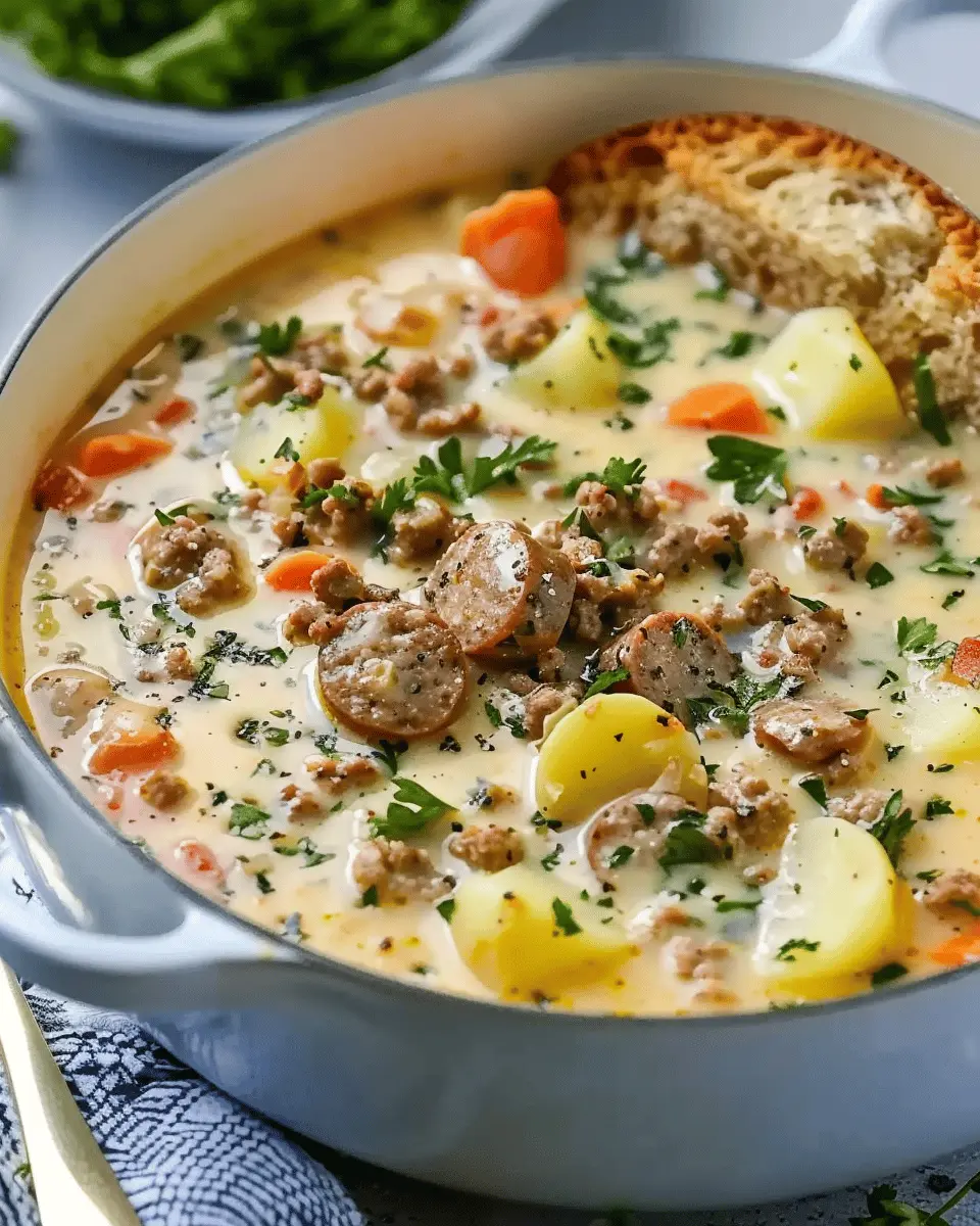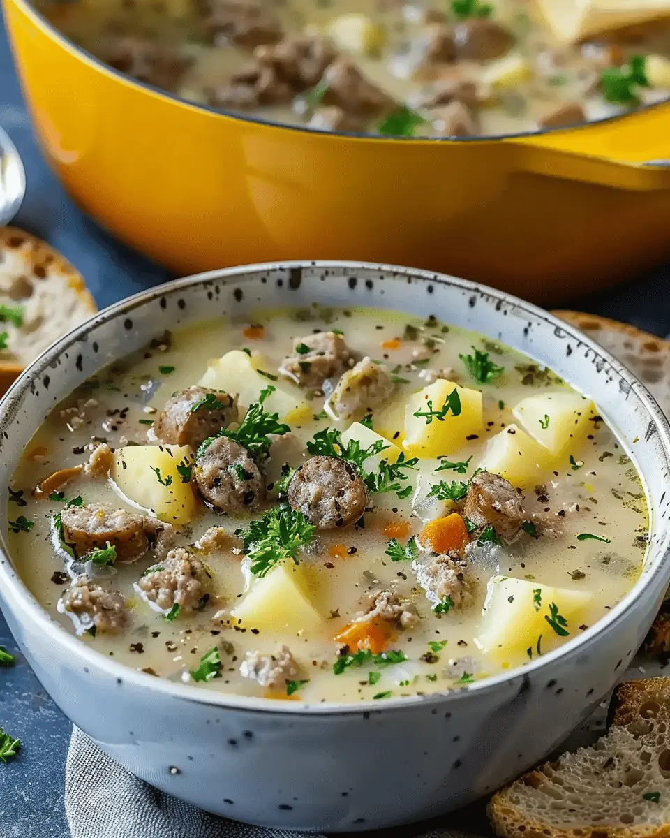 When enjoying your sausage potato soup, consider pairing it with a warm, crusty bread. A rustic sourdough or a buttery dinner roll makes for the perfect companion. Not only do these breads enhance the overall meal, but they also provide a satisfying way to scoop up every drop of delicious soup.