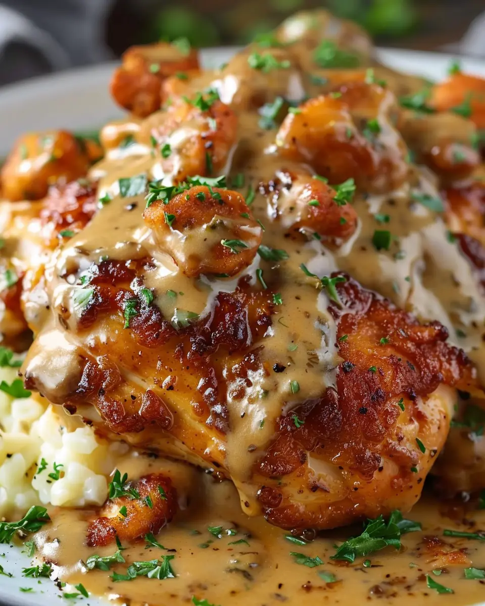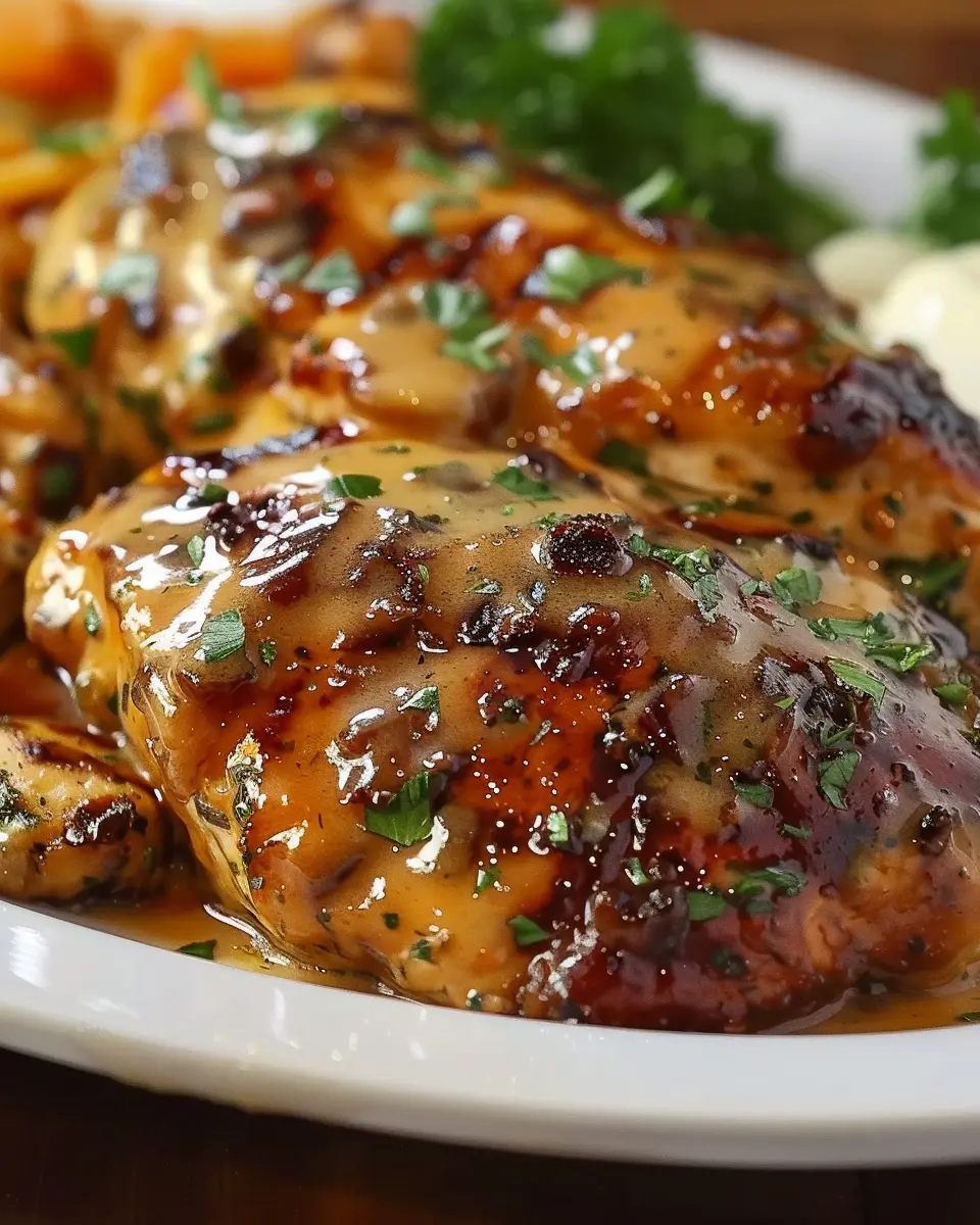• Layer it Up: Serve the chicken on a bed of mashed potatoes drizzled with gravy, then top it with sautéed mushrooms and a sprinkle of green onions for color.
