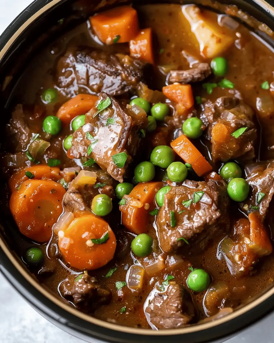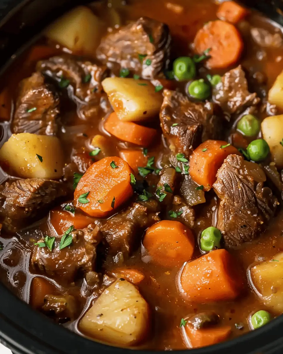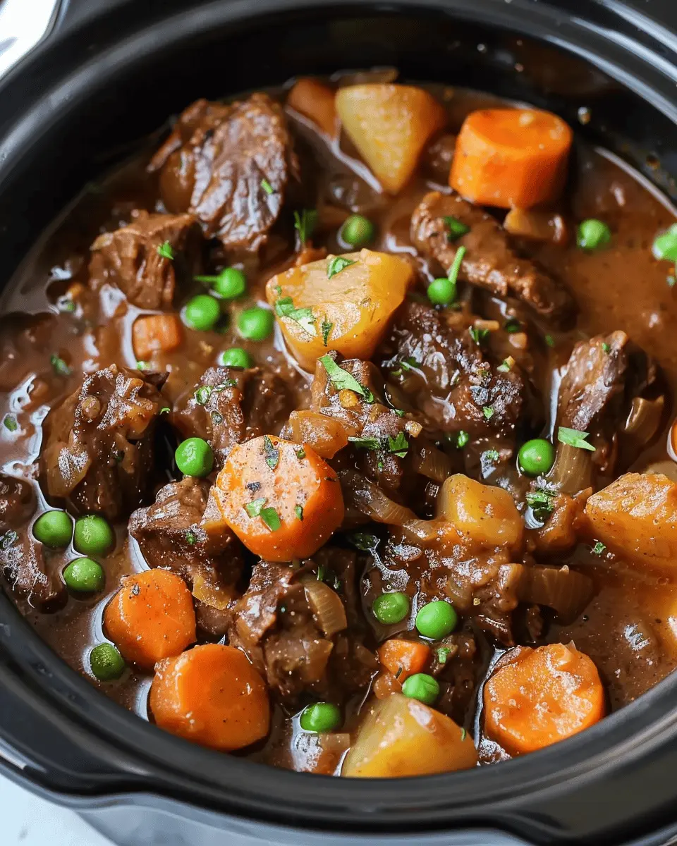 A delicious and hearty beef stew made in a crockpot, perfect for cozy nights at home.
